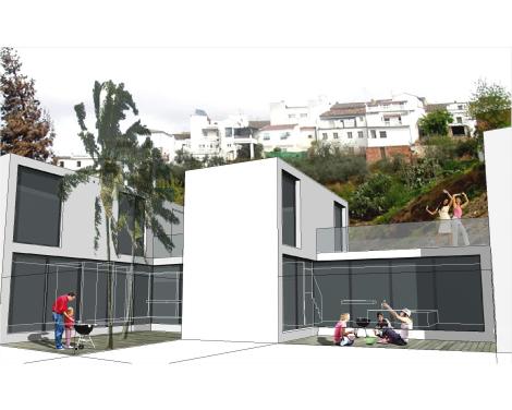 El acabado exterior de las viviendas será encalado, al igual que las edificaciones del entorno. Las aperturas serán puntuales y grandes, para conseguir un espacio interior luminoso. Las estancias orientadas al patio disfrutarán de las mayores aperturas, para tratar de «introducir» el patio en la vivienda.