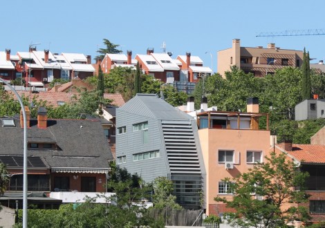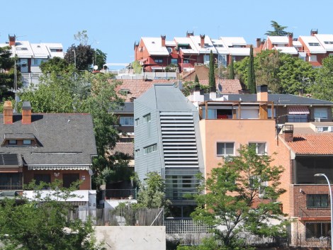 El edificio se desarrolla en un solar con mucho fondo y poca fachada, por lo que al respetar la separación a linderos obligatoria según normativa, resultaba una crujía muy estrecha de 4 metros. Se distribuye de la siguiente manera: en la planta sótano se ubica un garaje con montacoches, sobre rasante en cada una de las plantas hay una apartamento con salón-comedor-cocina-dormitorio y baño, siendo el último de tipo dúplex, con un núcleo de comunicación vertical y habiendose previsto la posibilidad de instalar un ascensor interior en el futuro. La fachada es de tipo ventilada, se resuelve mediante paneles de cinc, en la parte orientada al sur se han incluido unas lamas orientables, para controlar el asoleo y de esta manera mejorar el funcionamiento energético del edificio.
