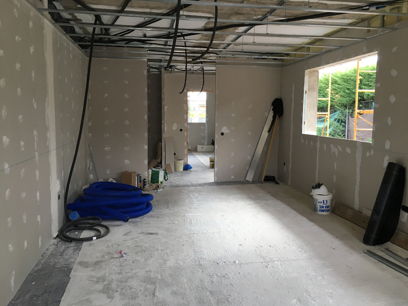 Toda la parte de la vivienda llevaría el sistema SATE en fachada, optimizando el comportamiento energético, con el aislamiento térmico en la capa exterior. En cuanto a la instalación de calefacción-refrigeración será mediante aerotermia, combinado con un chimenea de biomasa no densificada en el salón.