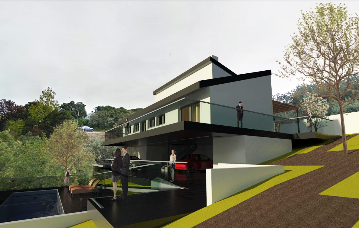 En la plataforma inferior se prevé una piscina exterior climatizada, aprovechando en verano las placas solares térmicas ubicadas en la cubierta orientada al sur. El sistema de calefacción-refrigeración se basa en un sistema de aerotermia y placas solares térmicas en la cubierta, mediante suelo radiante.