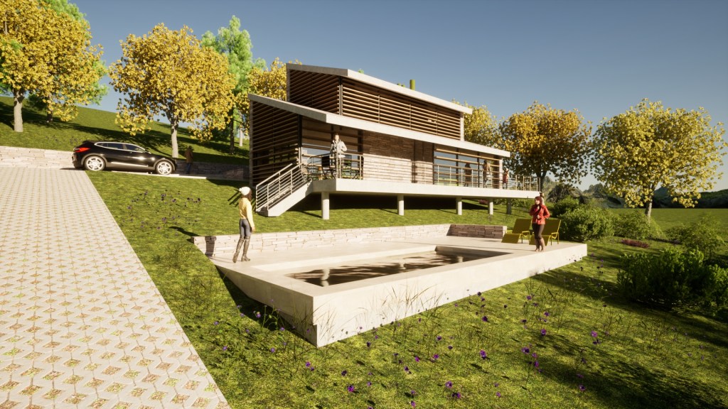 La parcela contará con una piscina exterior climatizada, aprovechando en verano las placas solares térmicas ubicadas en la cubierta orientada al sur. El sistema de calefacción-refrigeración se basa en un sistema de aerotermia y placas solares térmicas en la cubierta, mediante suelo radiante-refrigerante.