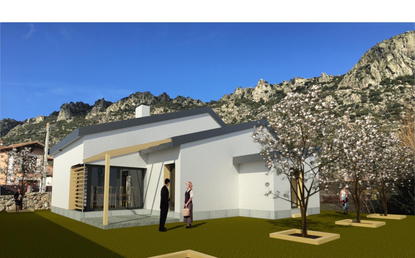 La vivienda se ubica en la calle La Encerrada, en La Cabrera, al pie del «Pico de la Miel», en una parcela con fantásticas vistas a la montaña y en pleno casco urbano. Los espacios vivideros se orientan hacia el sur y al este, optimizando el funcionamiento energético de la vivienda, mediante la configuración de espacios servidores-servidos, los espacios no habitables hacen la función de amortiguador en las orientaciones desfavorables. Se propone un sistema de super-aislamiento en el exterior de la fachada que, combinado con protección mediante lamas o una pérgola en los huecos orientados a sur y oeste facilitan un consumo energético muy reducido, al mismo tiempo sin perder las vistas a la montaña enmarcadas en el salón. Se pretende incorporar elementos vegetales como técnica de acondicionamiento pasiva, mediante la introducción de la «parra virgen» que creciendo en las pérgolas y en algunas fachadas protegerán el edificio del asoleo en los meses de verano. El programa principal se desarrolla en una sóla planta, con salón-comedor-cocina, dos dormitorios, cuarto de baño, cuarto de instalaciones, contando además con una buhardilla en el nivel superior.