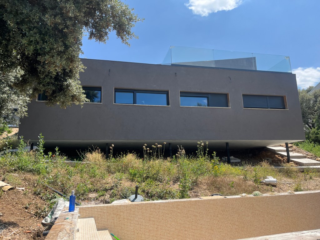 Se ubica en una parcela con una topografía con un desnivel moderado descendente, orientada al sur-norte, que disfruta de unas fantásticas vistas de la sierra norte de Madrid.