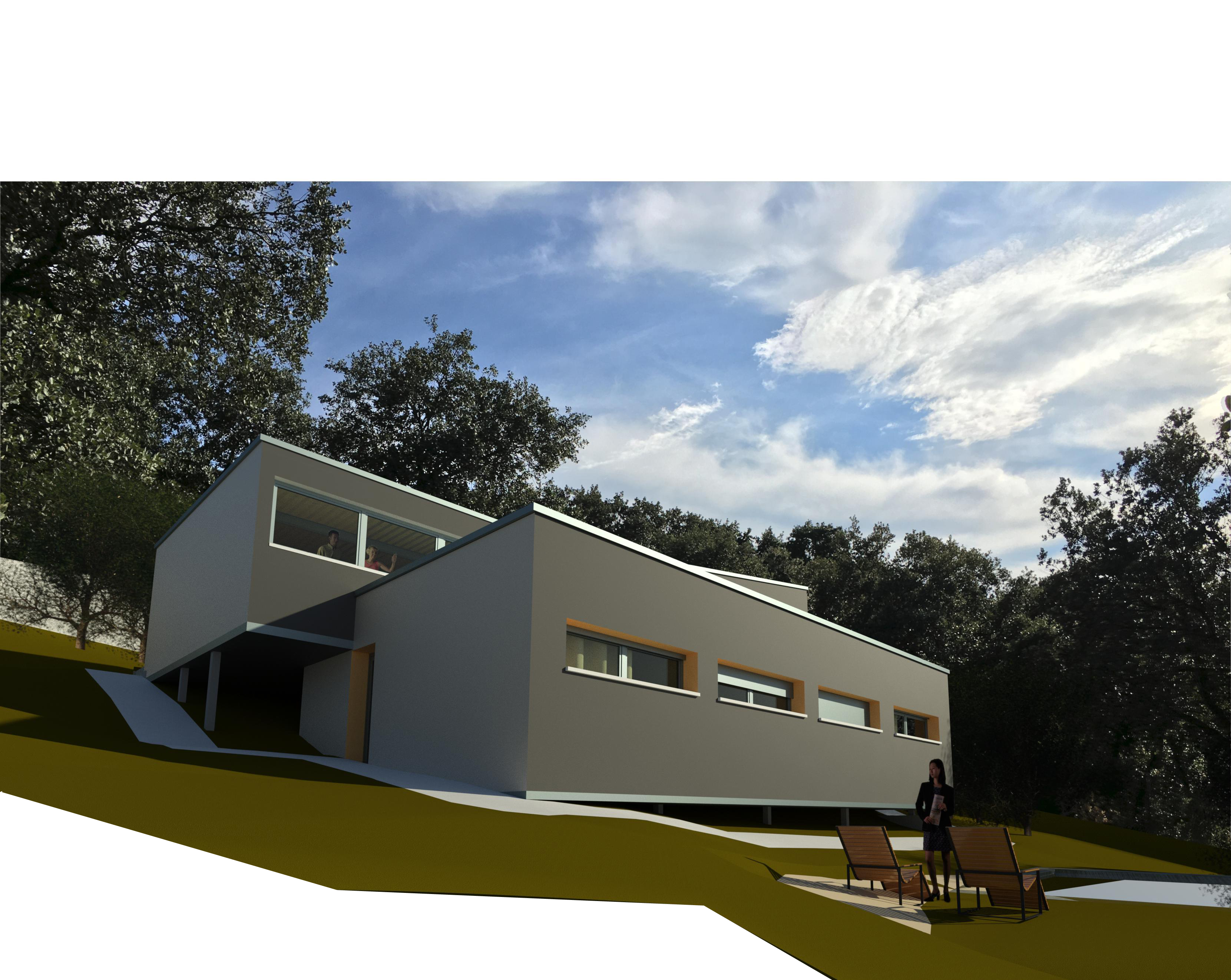 La vivienda es un edificio de consumo de energía casi nulo (eecn o nzeb), con calificación energética AA, se distribuye en dos volúmenes, la parte superior alberga la zona de día y aparcamiento y la parte inferior la zona de noche, se aprovecha el desnivel para crear sobre el cuerpo inferior una terraza para contemplar el espléndido paisaje.