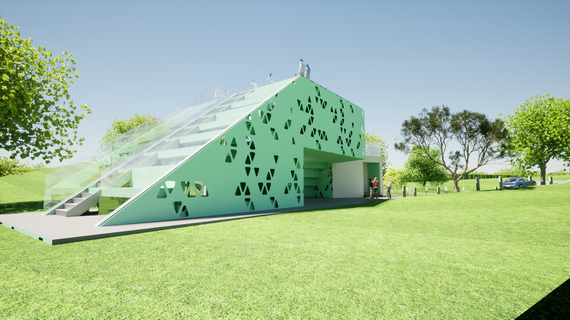 Es una vivienda con cubierta escalonada, vegetal para mejorar el confort térmico, transitable en toda su superficie, se puede recorrer y jugar de manera ilimitada.