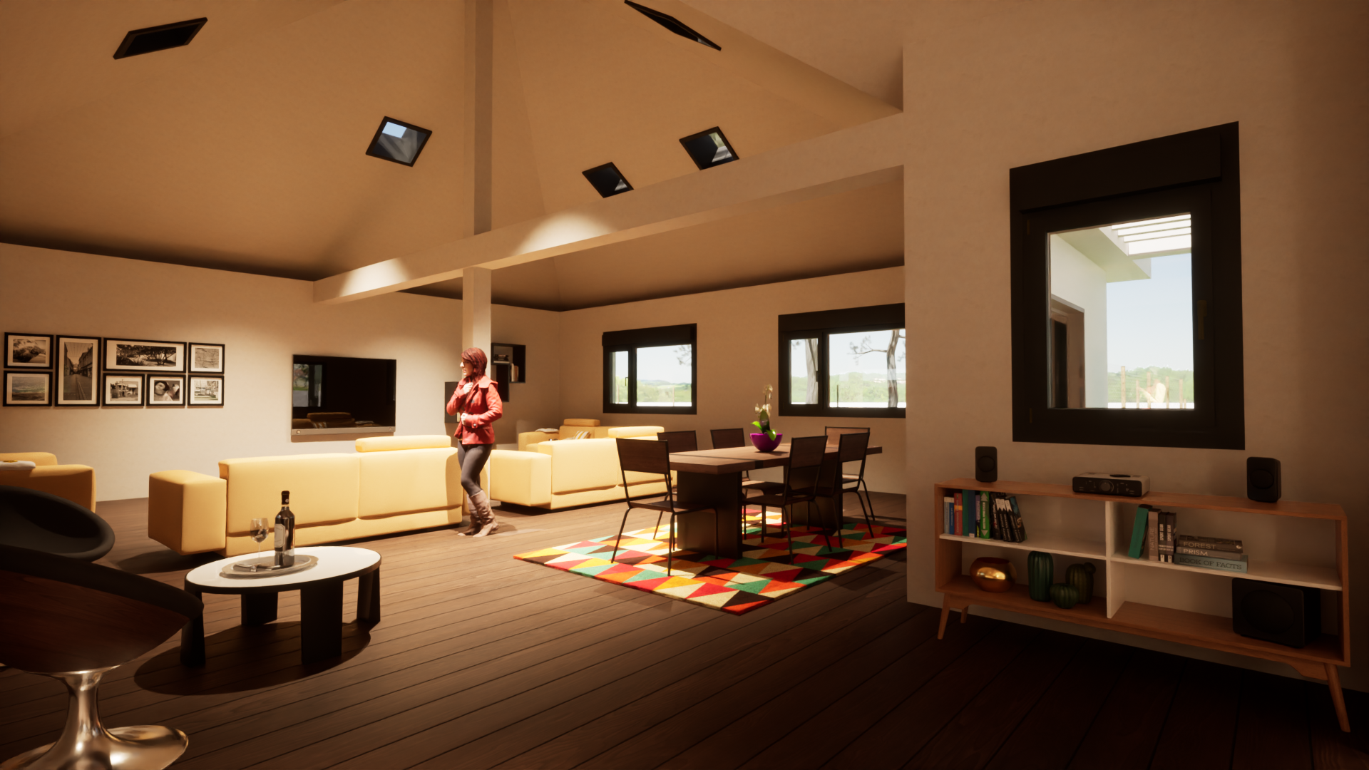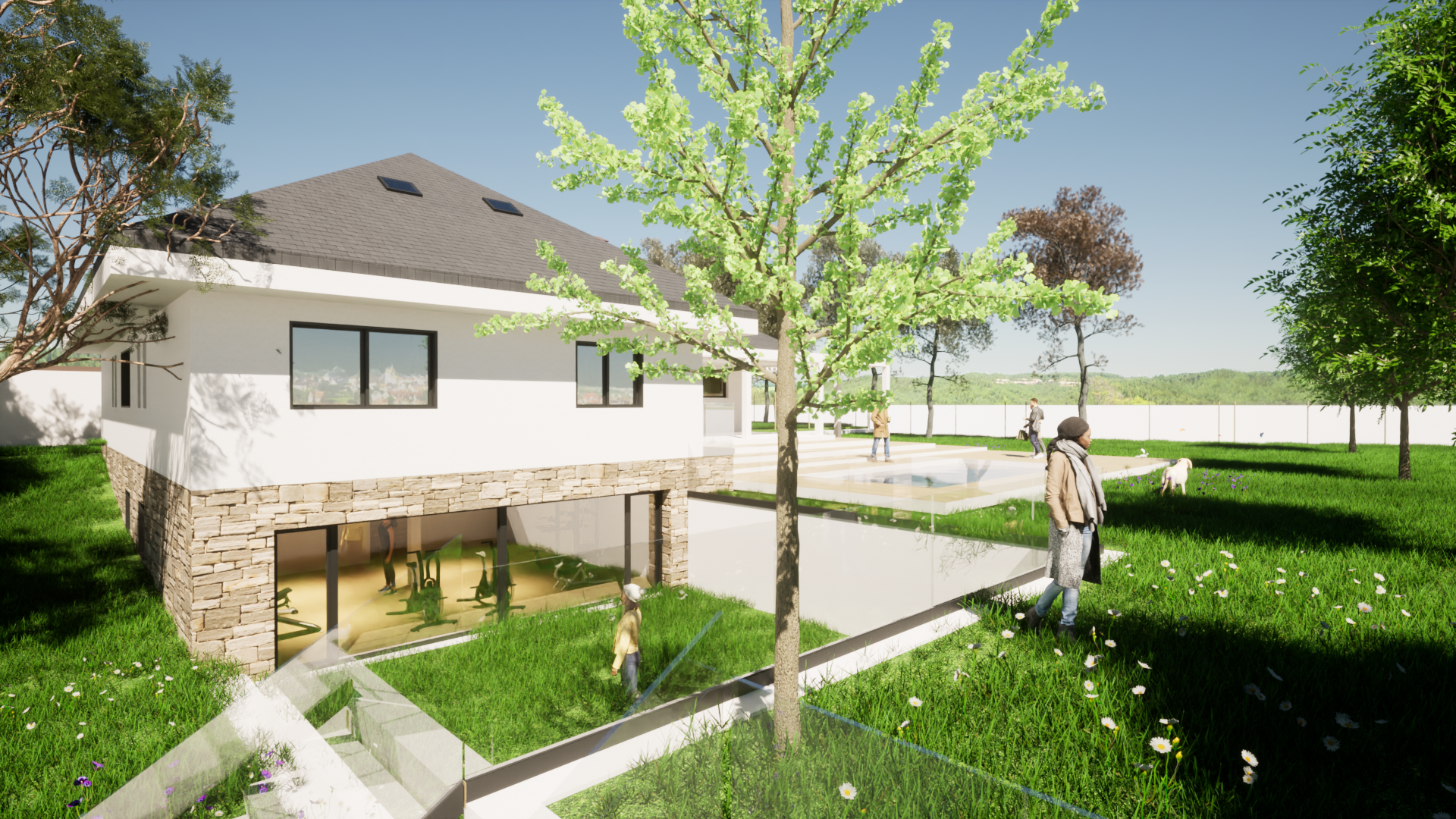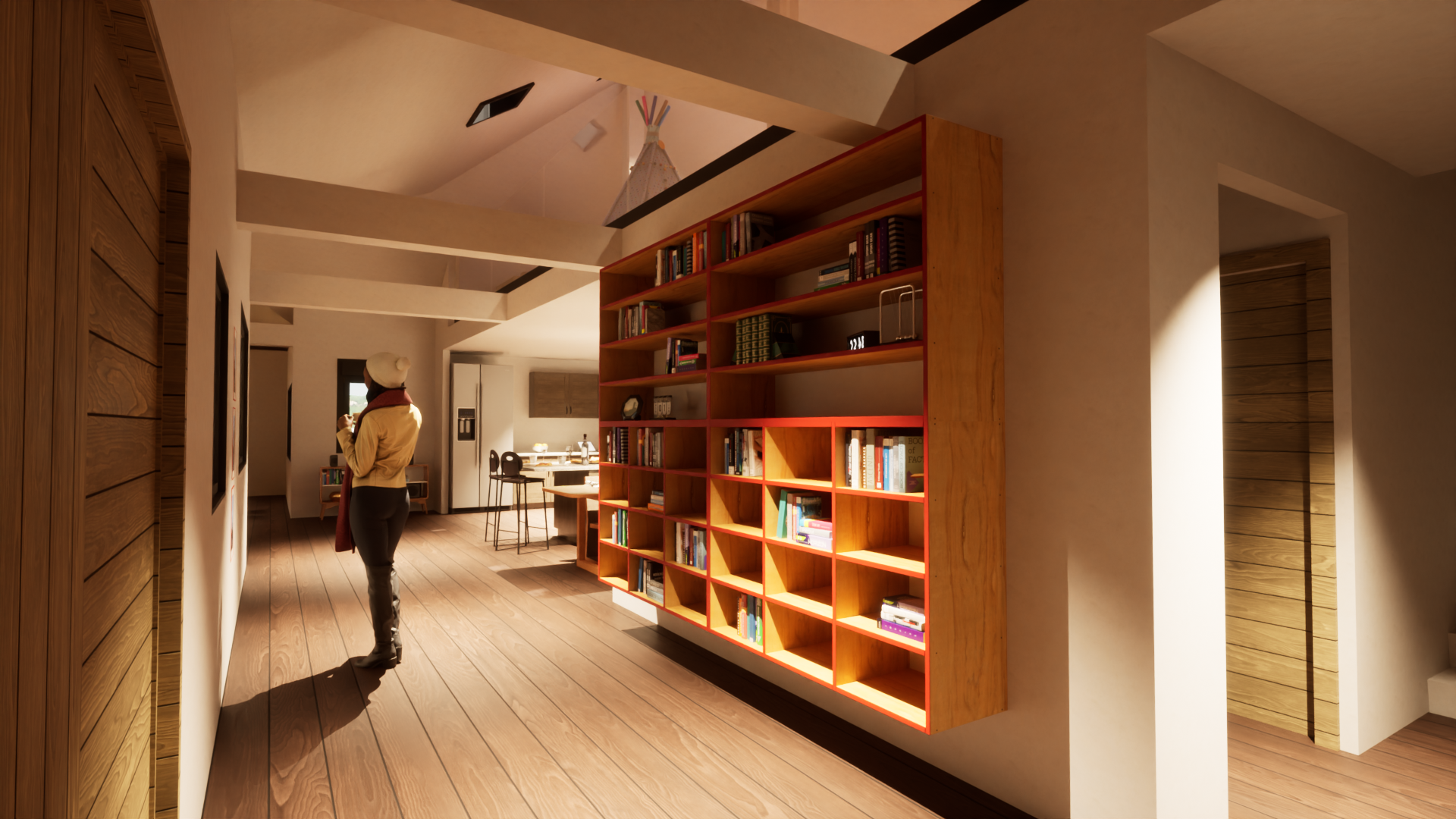 La propuesta comunica los espacios abuhardillados de la planta primera con los de la planta baja, mediante dobles alturas, amplificando los espacios en ambos niveles, creando una nueva distribución menos compartimentada, sustituyendo la escalera de caracol por otra de dos tiros más cómoda, ampliando las aperturas de fachada y modificando la topografía, conectando la vivienda, incluso en su nivel inferior, con el exhuberante jardín que la rodea.