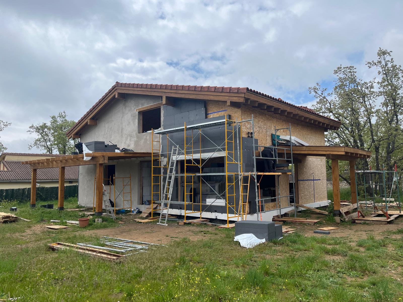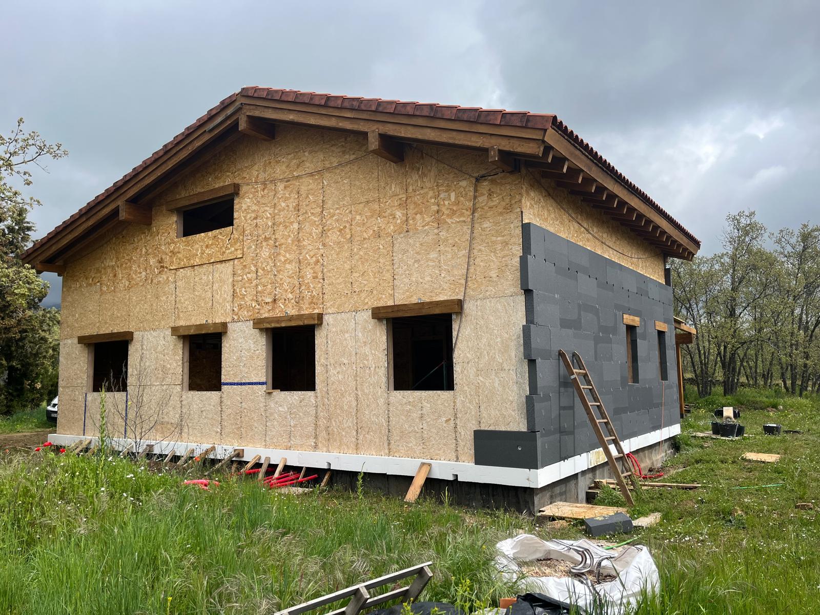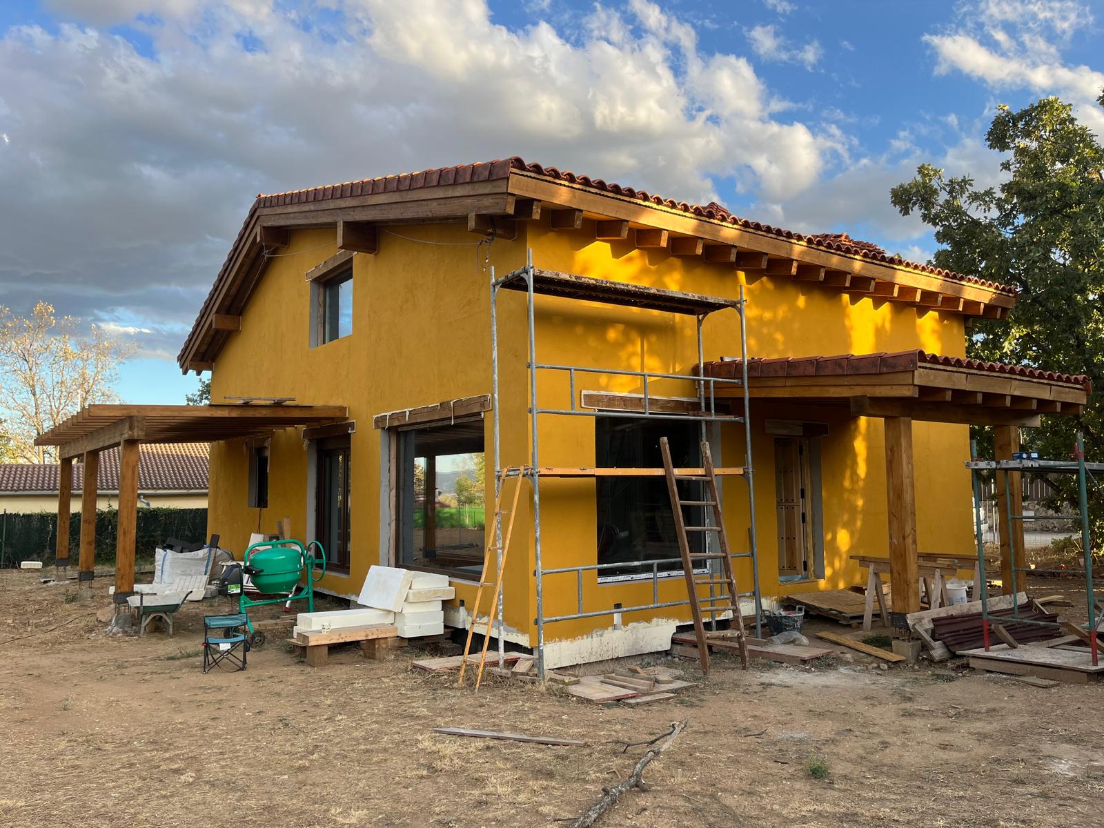 La vivienda se ubica en la urbanización Los LLanos, Villavieja de Lozoya (en la Sierra Norte de Madrid). Se ubica en una parcela con una topografía con desnivel muy leve. La vivienda se desarrolla en dos plantas. El acabado exterior del cerramiento de fachada se prevé mediante sistema “Sate” terminado en mortero acrílico, proporcionando un óptimo aislamiento térmico. La estructura de los cerramientos de la vivienda es de entramado ligero de madera (EML), con lo que se minimizan los puentes térmicos y los forjados son de vigas y viguetas de madera laminada. Cuenta con amplios ventanales para disfrutar de las vistas del entorno. La cubierta está formada por una estructura de vigas y viguetas de madera laminada, paneles sandwich formados por aglomerado-xps-friso, acabadas en teja mixta, con cubierta ventilada. La calefacción es por suelo radiante y cuenta con un cassette de biomasa no densificada en el salón.