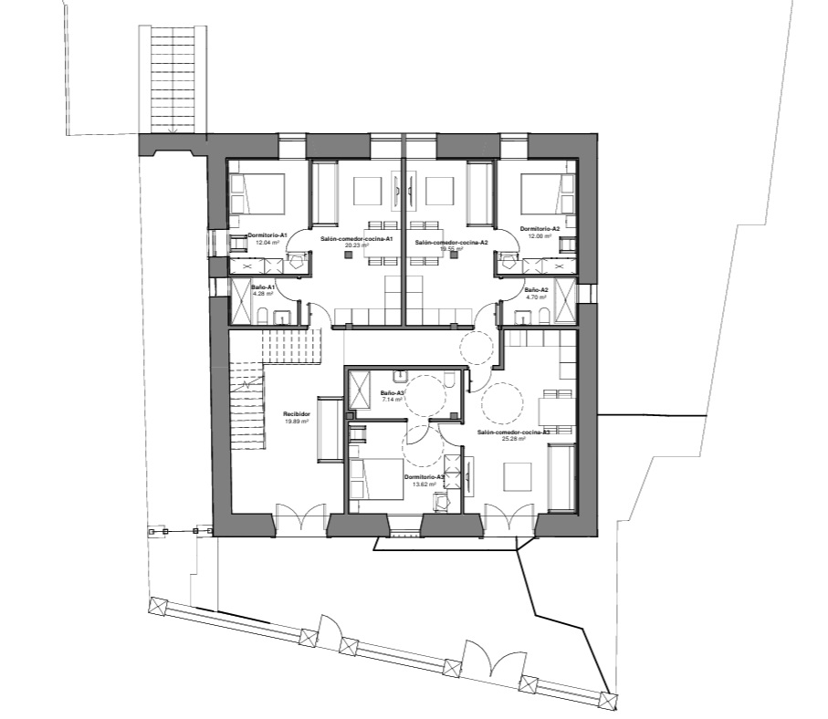 El objeto del proyecto es rehabilitar una casa señorial ubicada en Carasa (Cantabria), construida en el año 1900, para convertirla en edificio de apartamentos turísticos. Se trata de un edificio de tres plantas, con estructura de muros de carga de mampostería, revocado exteriormente, estructura de pilares y vigas de madera y cubierta de teja. En la planta inferior se prevén tres apartamentos, en la primera planta planta se prevén cuatro apartamentos y la última planta, que es abuhardillada, quedará diáfana excepto un pequeño cuarto de instalaciones. Todos los apartamentos disfrutarán de vistas de los jardines delantero y trasero. Se prevé realizar un estudio de las vigas y pies derechos de madera que se pueden conservar, se realizarán los refuerzos necesarios y se sustituirán los elementos dañados.