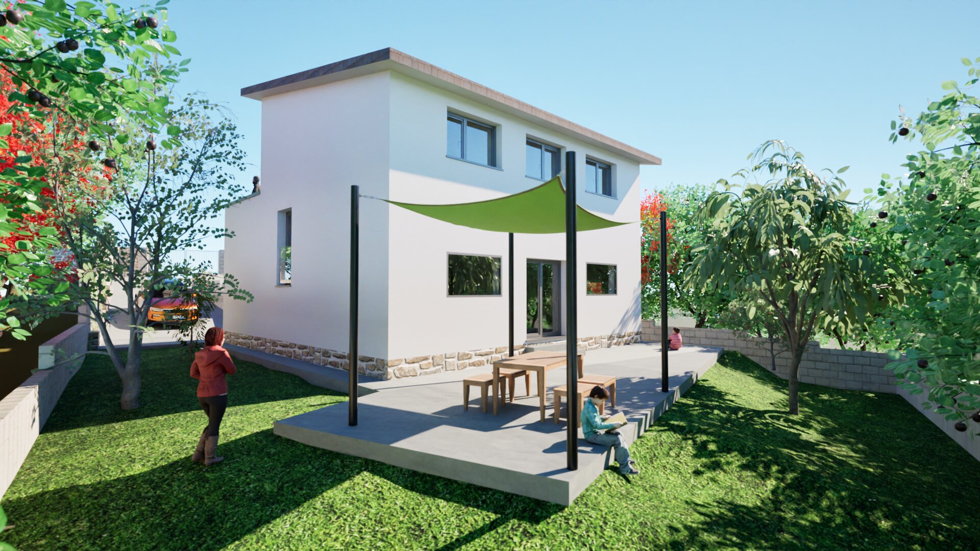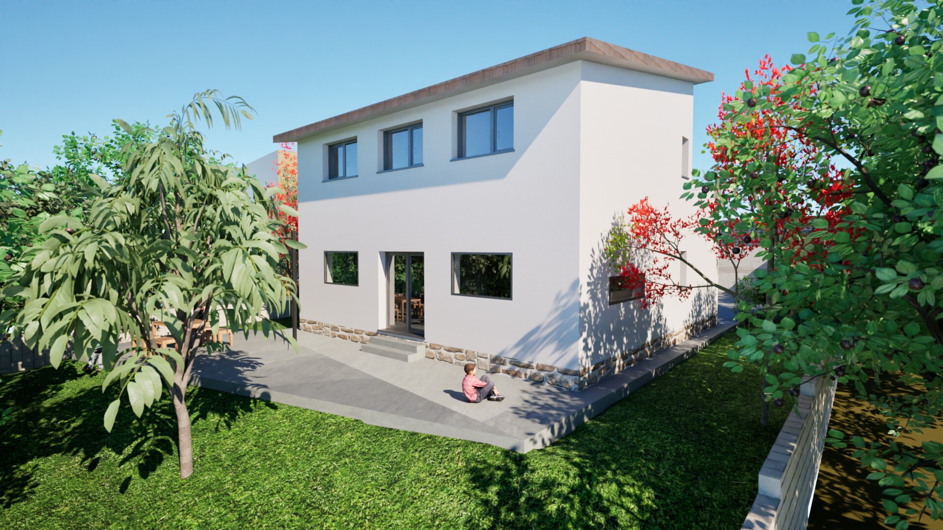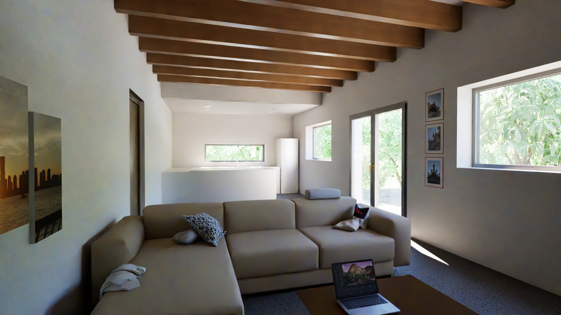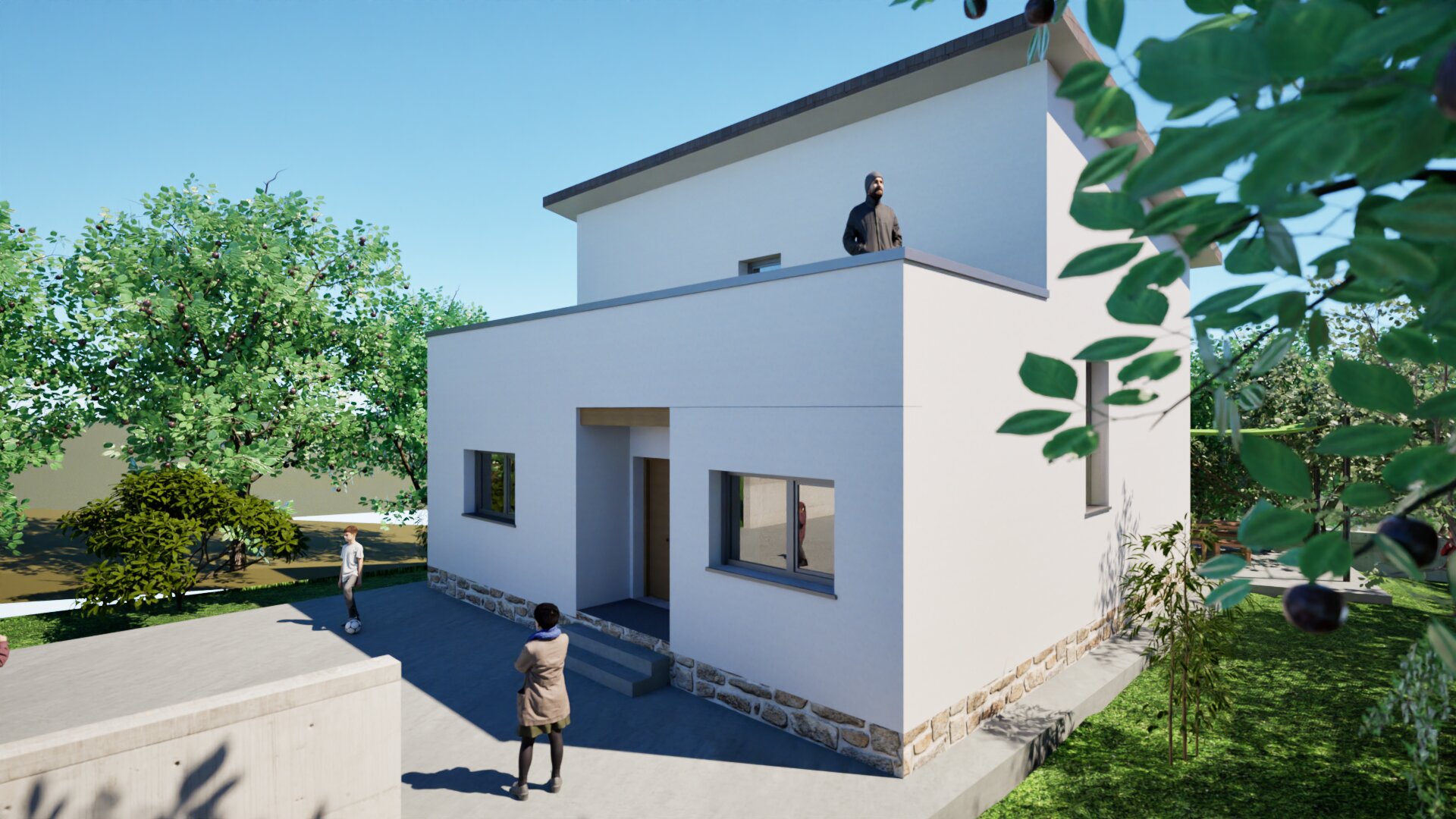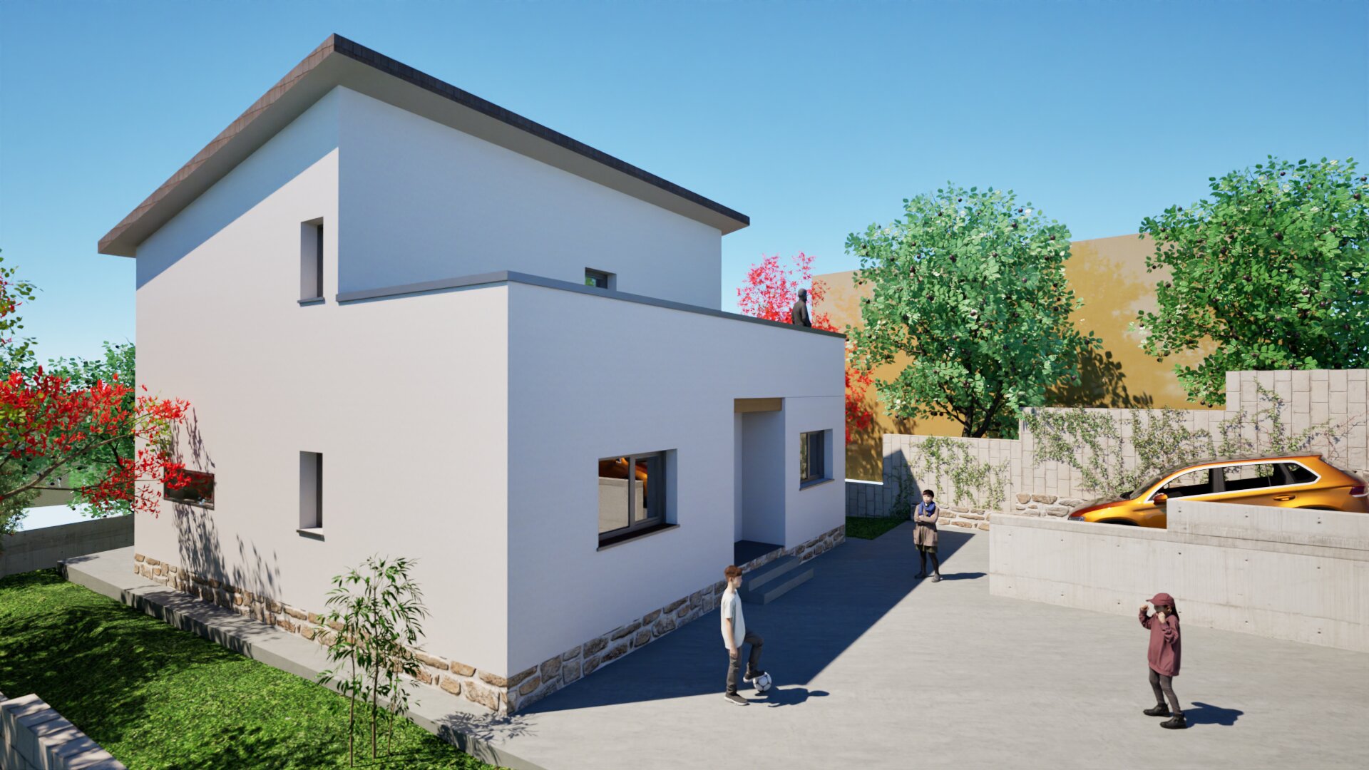 La vivienda se ubica en La Cabrera, en la Sierra Norte de Madrid. Se ubica en una parcela con una topografía con desnivel pronunciado en la parte posterior. La vivienda se desarrolla en una planta. El acabado exterior del cerramiento de fachada se prevé mediante sistema “Sate” terminado en mortero acrílico, para un óptimo aislamiento térmico. La estructura de de la vivienda es de entramado ligero de madera (EML), sobre forjado sanitario ventilado mediante «sistema caviti», muy eficiente energéticamente y con huella de carbono muy reducida. La cubierta es de vigas y viguetas de madera laminada, paneles sandwich formados por superpan-xps-superpan, con acabado en teja pana, con cubierta ventilada. Cuenta con amplios ventanales para disfrutar del entorno. El sistema de calefacción previsto es suelo radiante-refrigerante por aerotermia.