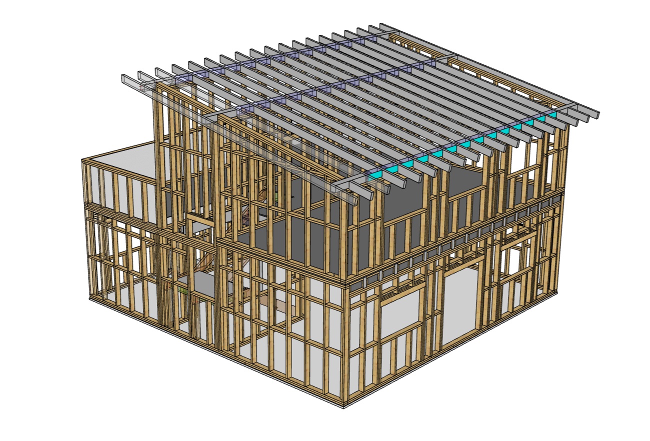 La vivienda se ubica en La Cabrera, en la Sierra Norte de Madrid. Se ubica en una parcela con una topografía con desnivel pronunciado en la parte posterior. La vivienda se desarrolla en una planta. El acabado exterior del cerramiento de fachada se prevé mediante sistema “Sate” terminado en mortero acrílico, para un óptimo aislamiento térmico. La estructura de de la vivienda es de entramado ligero de madera (EML), sobre forjado sanitario ventilado mediante «sistema caviti», muy eficiente energéticamente y con huella de carbono muy reducida. La cubierta es de vigas y viguetas de madera laminada, paneles sandwich formados por superpan-xps-superpan, con acabado en teja pana, con cubierta ventilada. Cuenta con amplios ventanales para disfrutar del entorno. El sistema de calefacción previsto es suelo radiante-refrigerante por aerotermia.