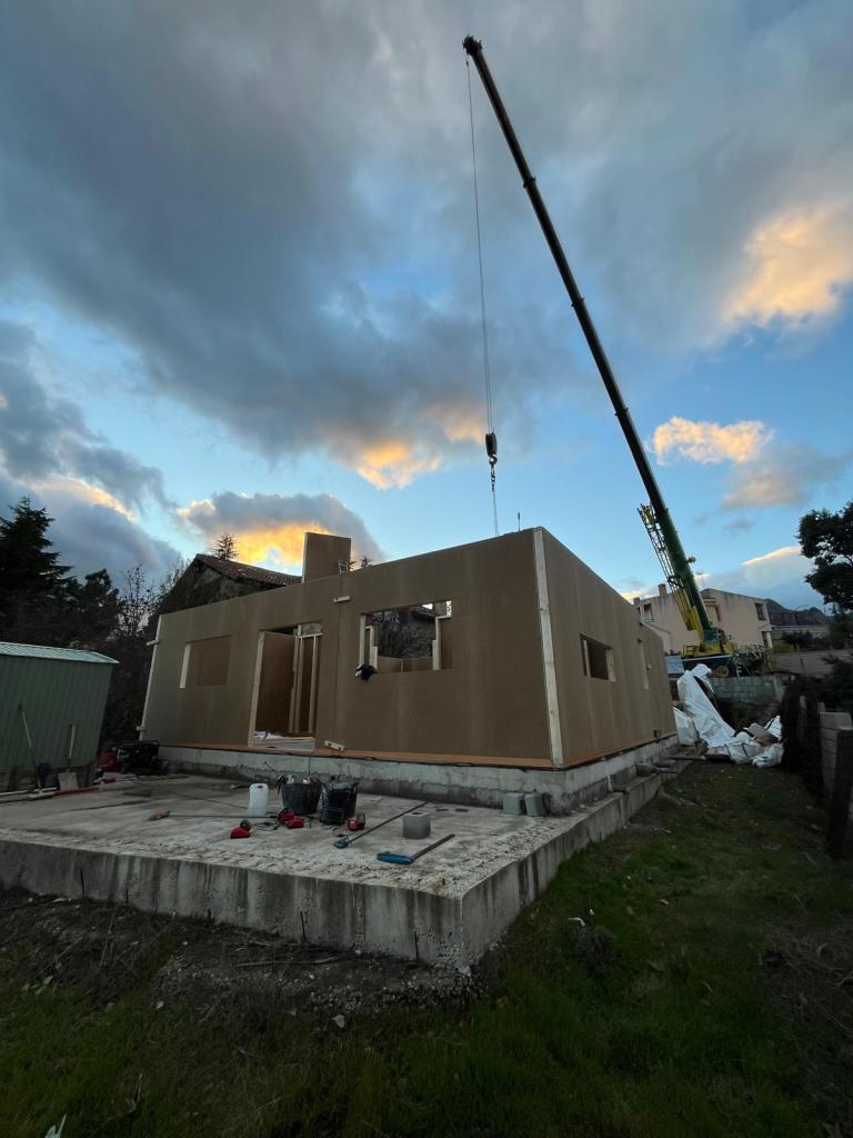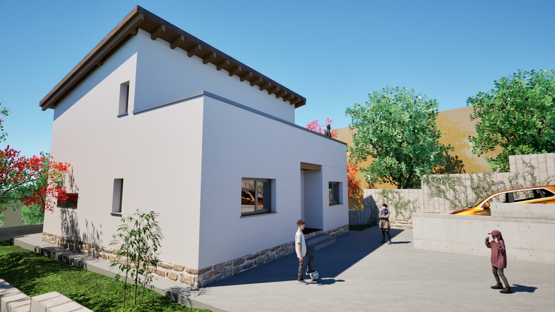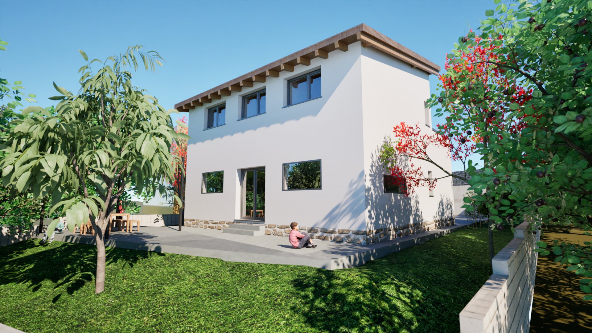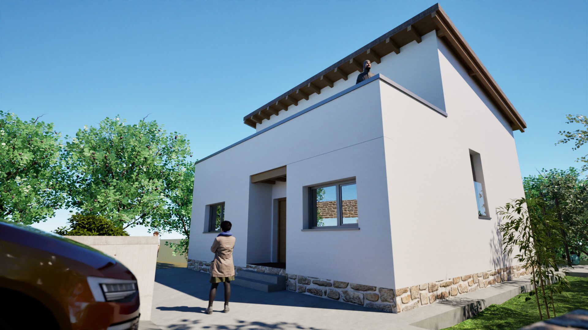 La vivienda se ubica en la Calle Cabezuela, en La Cabrera, en la Sierra Norte de Madrid. Se ubica en una parcela con una topografía con desnivel pronunciado en la parte posterior. La vivienda se desarrolla en una planta. El acabado exterior del cerramiento de fachada se prevé mediante sistema “Sate” terminado en mortero acrílico, para un óptimo aislamiento térmico. La estructura de de la vivienda es de entramado ligero de madera (EML), sobre forjado sanitario ventilado mediante «sistema caviti», muy eficiente energéticamente y con huella de carbono muy reducida. La cubierta es de vigas y viguetas de madera laminada, paneles sandwich formados por superpan-xps-superpan, con acabado en teja pana, con cubierta ventilada. Cuenta con amplios ventanales para disfrutar del entorno. El sistema de calefacción previsto es suelo radiante-refrigerante por aerotermia.