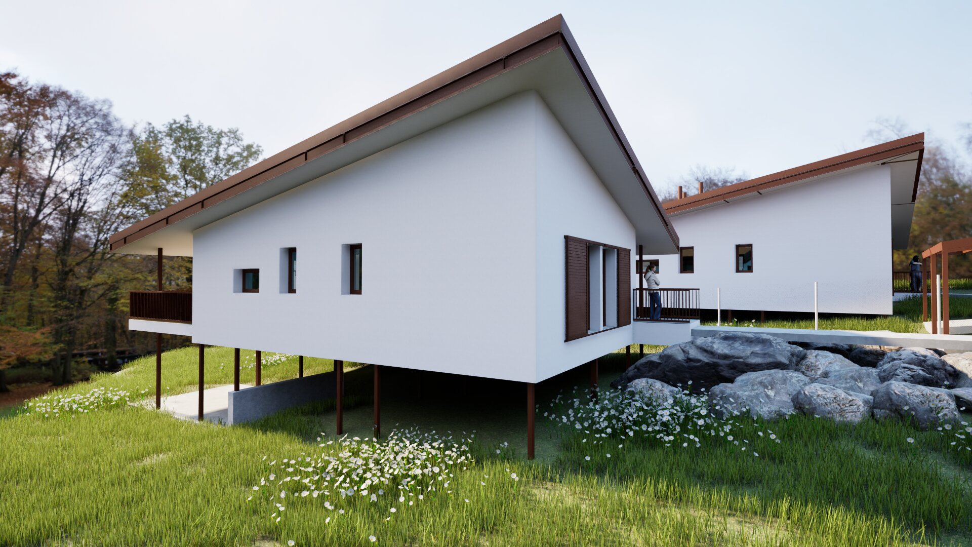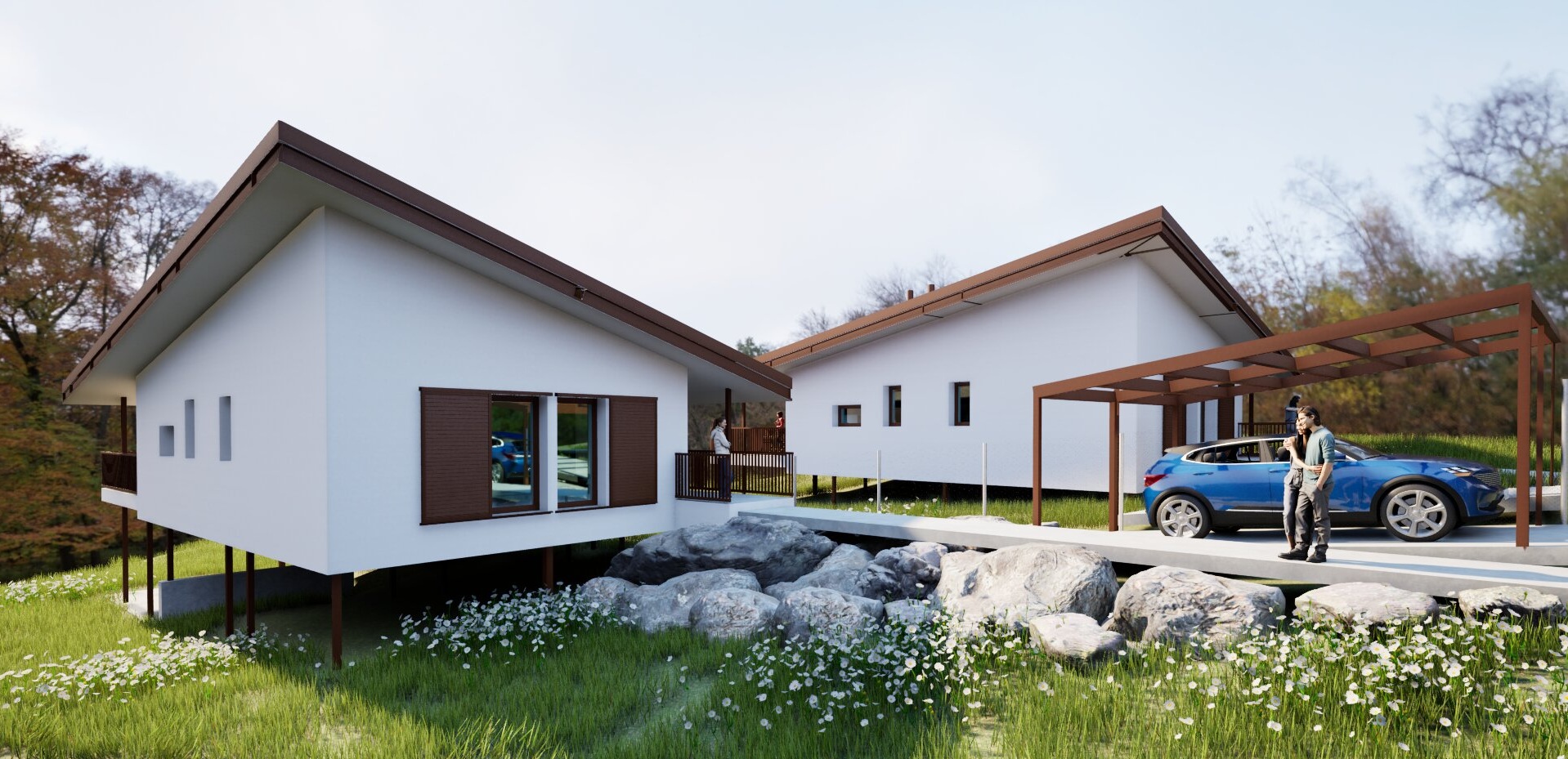 Se trata de unas viviendas de bajo consumo energético, ubicadas en Buitrago de Lozoya, en la Sierra Norte de Madrid. Las viviendas están emplazadas en una parcela con desnivel medio, se desarrollan en una sola planta para facilitar la accesibilidad, cuentan con dos porches cubiertos y una de ellas con un cenador en el nivel inferior aprovechando el desnivel. Disponen de una pérgola de aparcamiento. La estructura de las viviendas es mixta: metálica, hormigón armado y vigas de madera. Las fachadas están acabadas exteriormente en sate. Cuentan con contraventanas de lamas para el control solar en las fachadas con asoleo. El sistema de climatización es a través de aerotermia con suelo radiante.